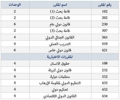 - في نطاق التدريس يقدم قسم القانون الدولي مادة القانون الدولي العام وبعض من فروعه، مادة القانون الدولي الخاص, التحكيم الدولي, ومادة قاعة بحث وأيضاً التدريبات العملية لطلبة القانون، ومادة حقوق الإنسان لغير طلبة الحقوق الدولي والمنظمات الدولية والتحكيم الدولي وأيضا مادة النظام القانوني الدولي ومادة القانون الجنائي الدولي ومادة القانون الدولي للبيئة، كما طرح قسم القانون الدولي ولأول مره مقرر حقوق الإنسان باللغة الانجليزية لغير الناطقين باللغة العربية.