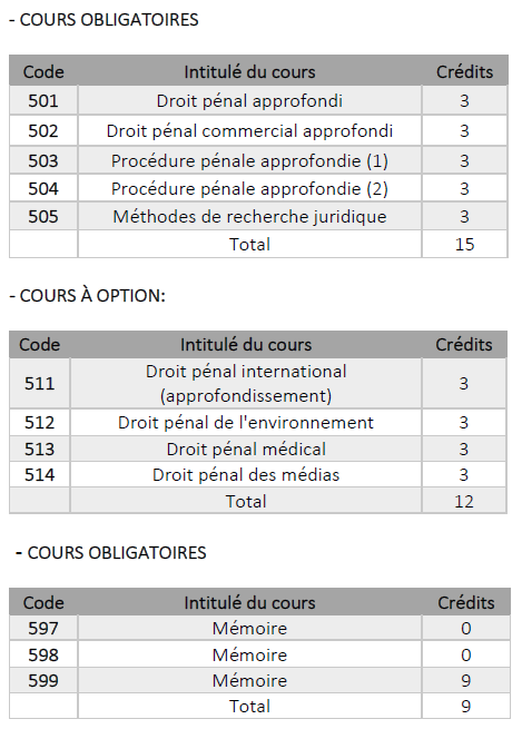 -Preuves criminelles et sciences forensiques (465)Descriptions des cours:
